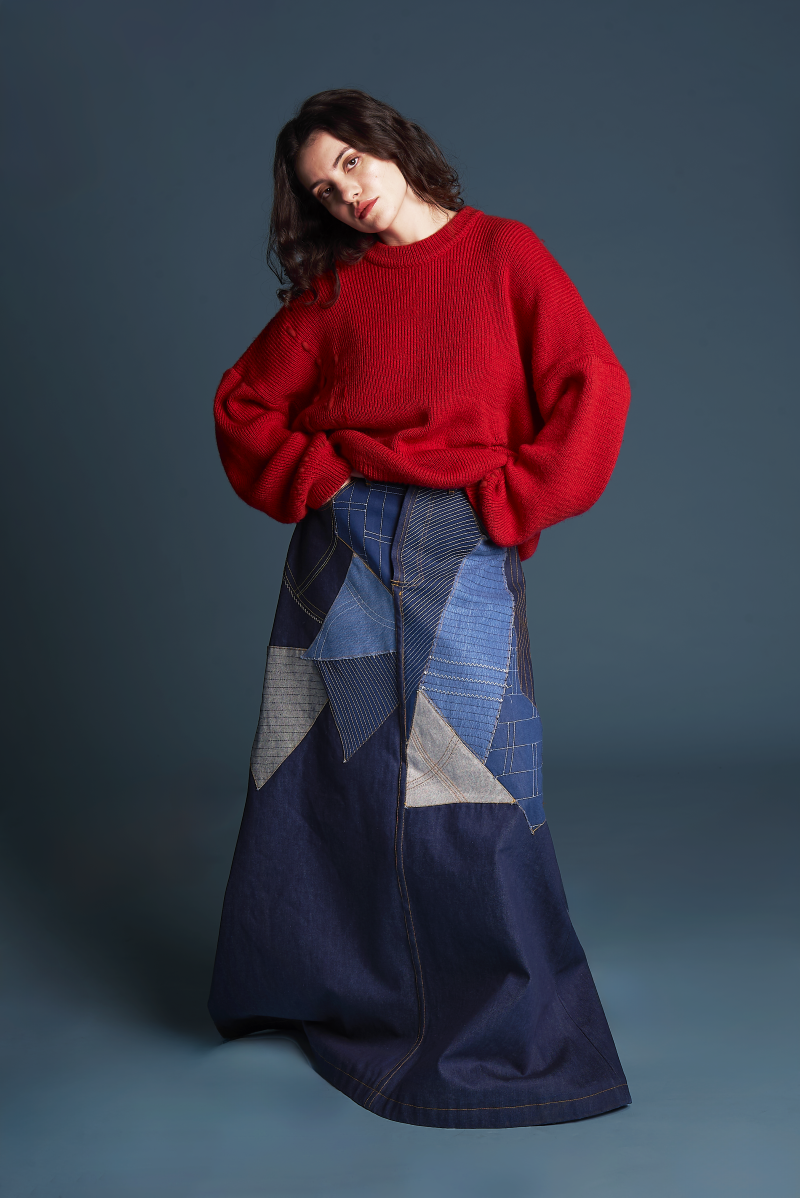 Odyssey is inspired by Teddy Boys & Girls to create meticulously crafted jeans and denim skirts embellished with patchwork. The patchwork recalls the Welsh countryside views, which are echoed in the brand’s logo, too, and symbolize the uniqueness of the journey of every product. Each piece contains the signature of the machinist, following Hiut’s tradition. The motto of Odyssey is Denim reimagined, style reused since its collection is made with 100% cotton recycled denim and fabric scraps to minimize waste and environmental impact. The thread is also made with cotton.