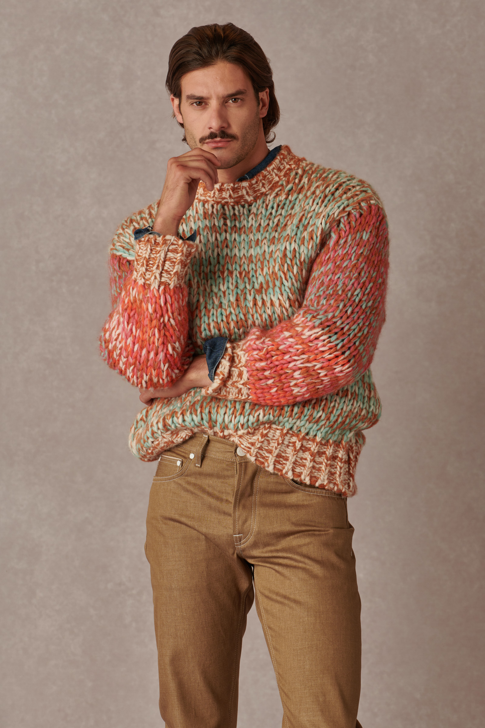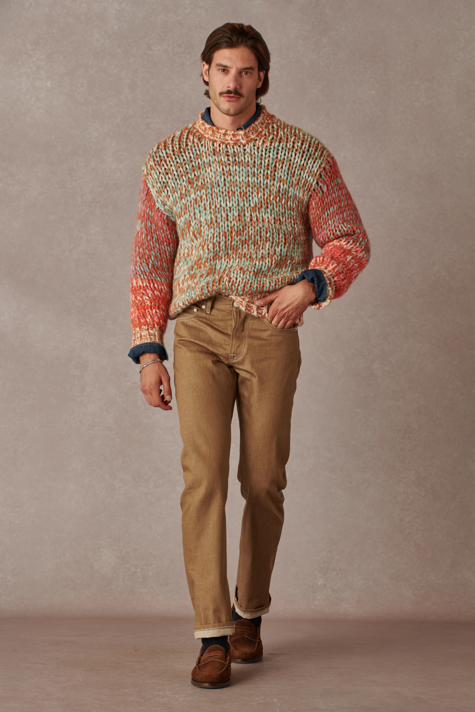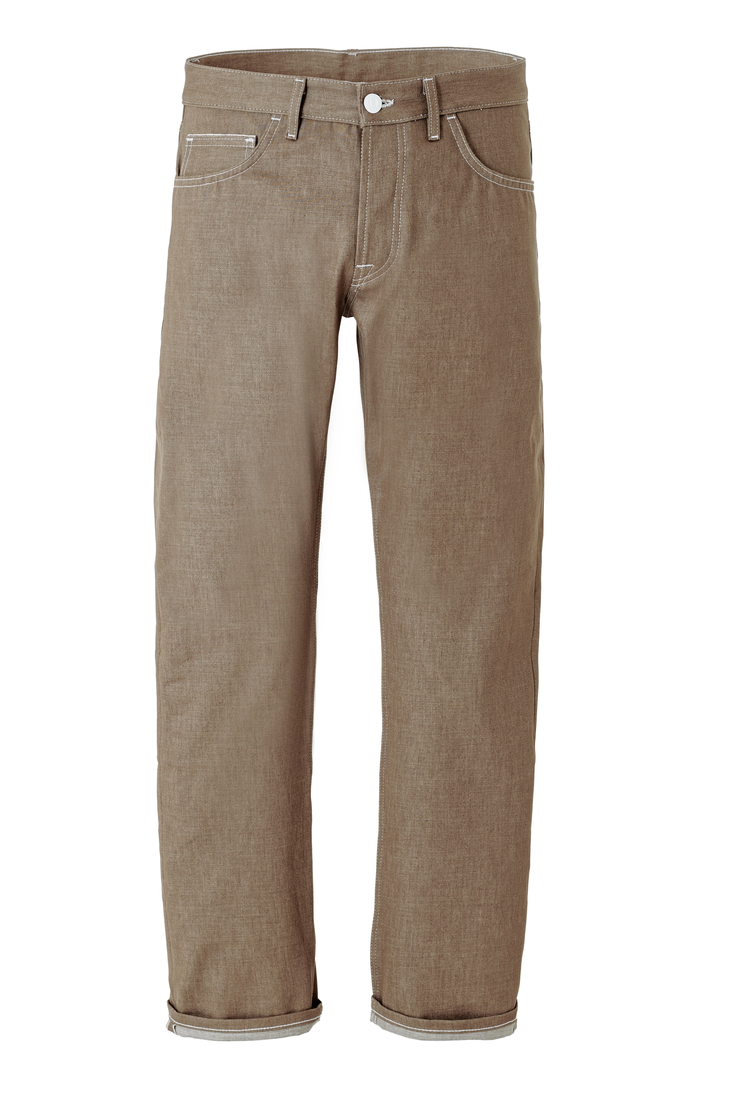 This classic 5-pocket, regular-fit jean features a straight leg that maintains a consistent length from the hip to the ankle. It offers both comfort and freedom of movement while presenting a balanced, clean look that flatters any body type and style. We provide this fabric in its raw state to highlight its natural beauty. The sand color has been a trend in recent seasons and provides a sophisticated alternative to traditional denim dyes. You’ll notice the selvedge on the inseam, which is why we recommend choosing a slightly longer hem length than what you usually select. This way, you can wear your jeans with cuffs.