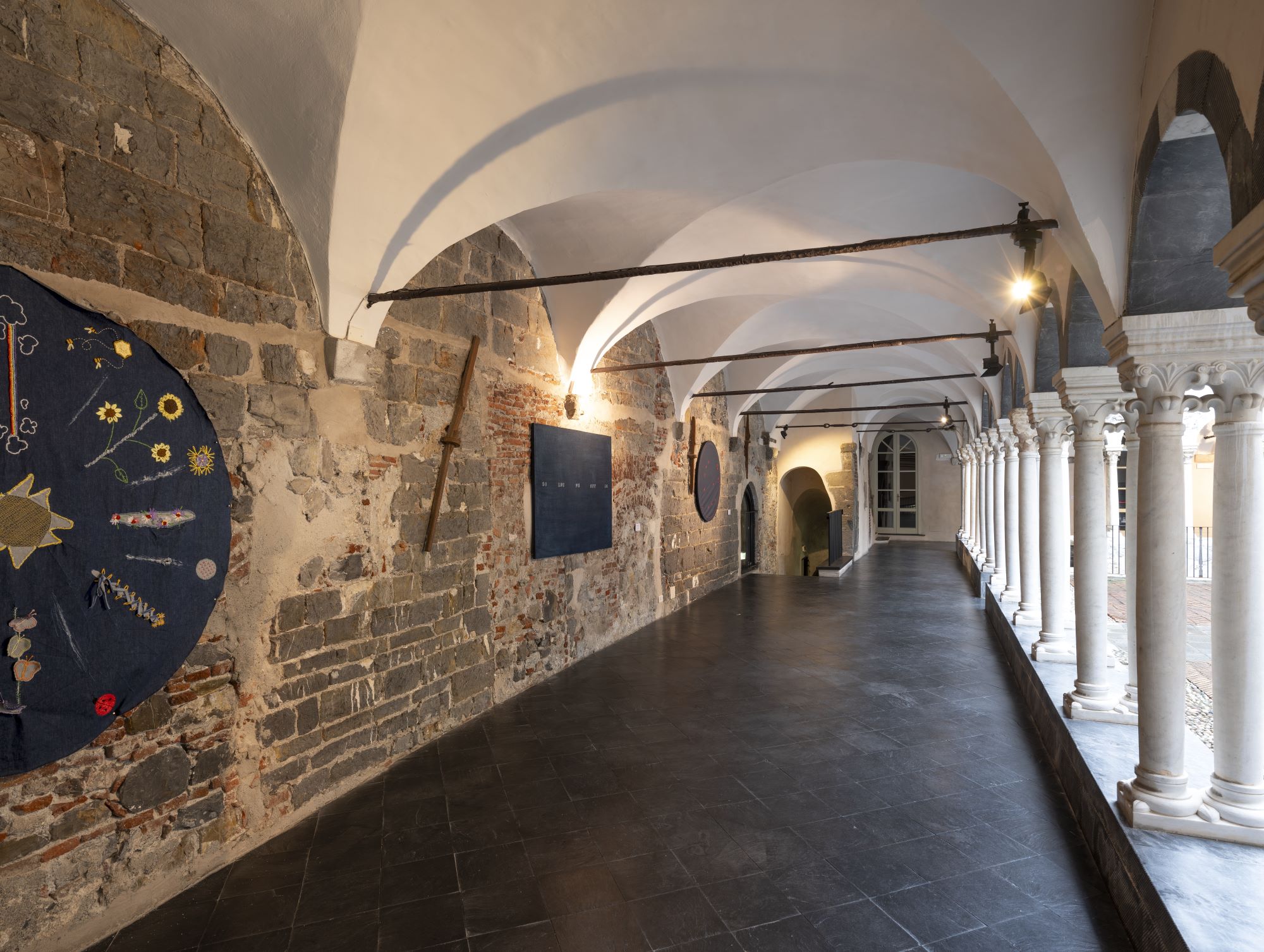 L’edizione 2024 di Artejeans non si è tenuta in un luogo qualunque. Grazie al confronto curatoriale con Paola Martini, direttore e conservatore del Museo Diocesano di Genova, la storia delle opere contemporanee si è intrecciata con quella dei Teli della Passione, realizzati nel XVI e XVII secolo con fibra di lino tinta indaco e dipinta a biacca, e conservati nello stesso museo.
