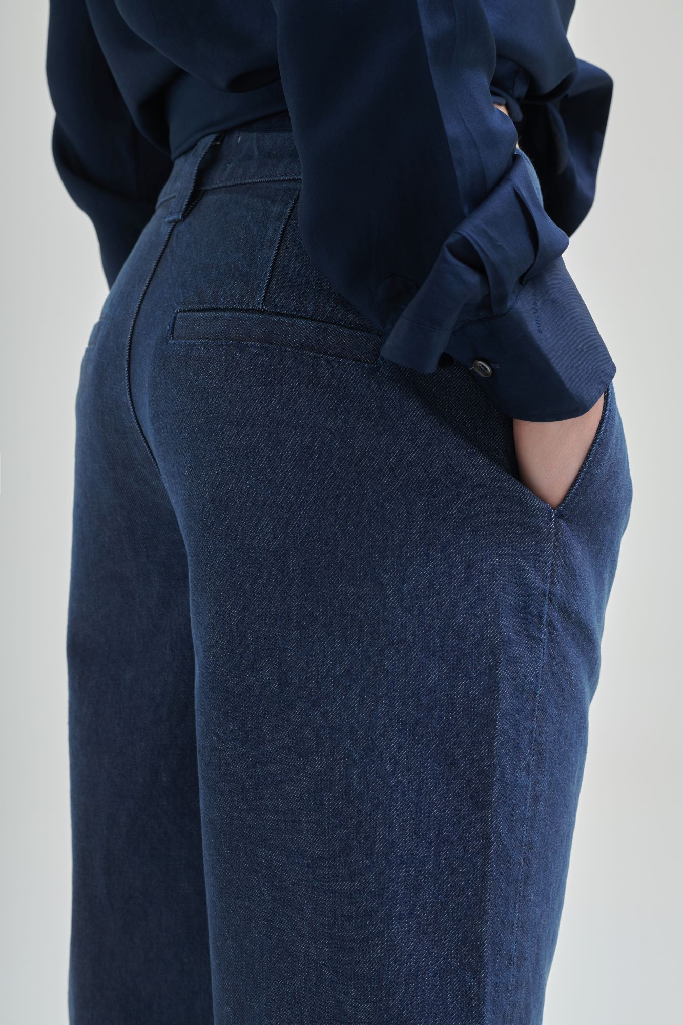 Anche qui, se il denim è cimosato o meno non è determinato dalla tecnica di filatura, che invece sancisce se è rigido o elasticizzato. Il denim rigido non contiene elastam o altre fibre elastiche, introdotto negli anni Settanta per una vestibilità aderente ma comoda. Inoltre, il denim rigido può essere realizzato interamente in cotone o in miscele di fibre, come cotone e lino, cotone e lana o cotone e canapa. Per questo motivo puoi trovare il denim cimosato sia rigido sia elasticizzato. Ad ogni modo, proprio come detto per il colore indaco scuro, il denim cimosato è spesso rigido per rendere omaggio alla tradizione del denim e mantenere un’estetica autentica.