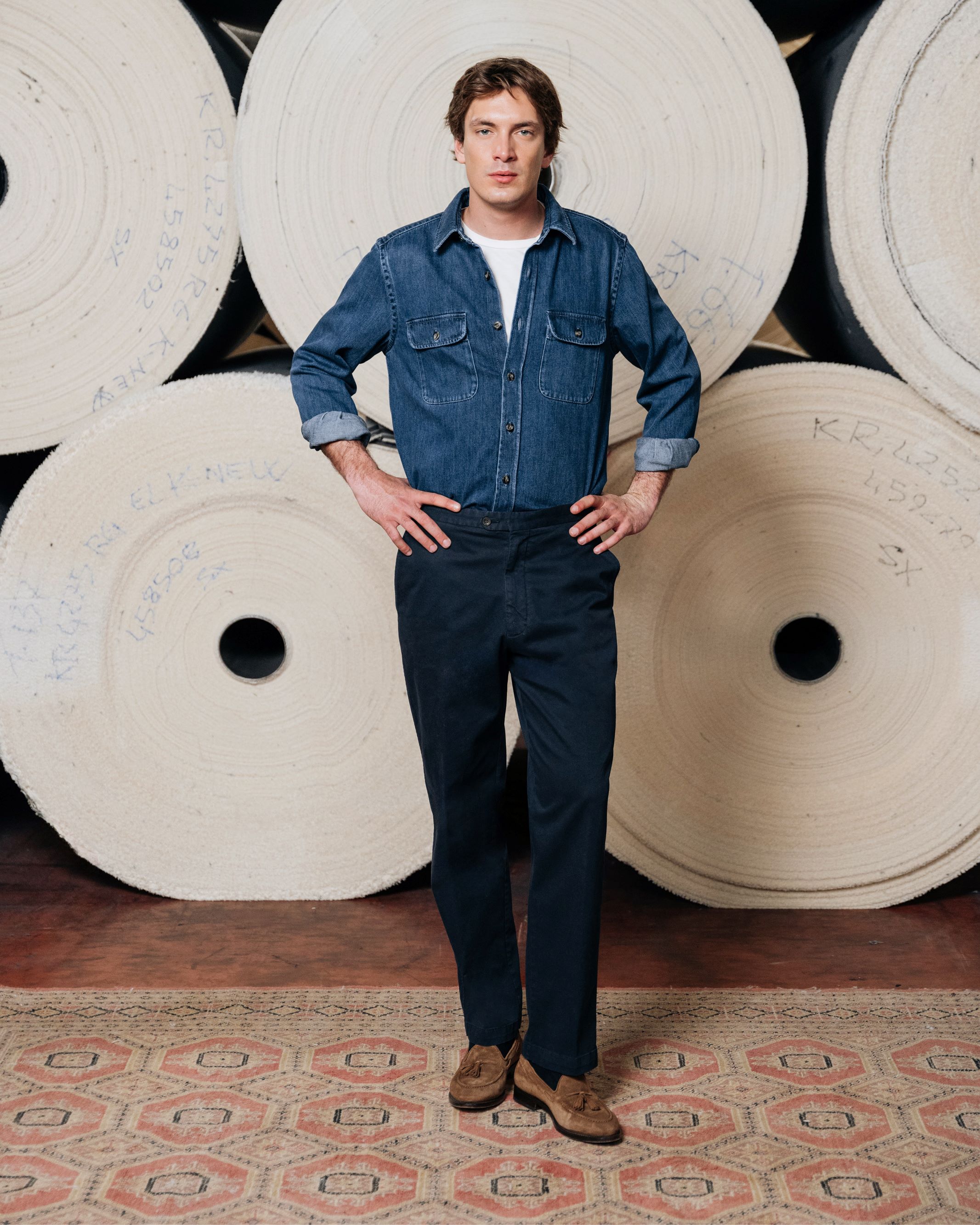 Anche i nomi dei tre capi che compongono la capsule rendono omaggio al patrimonio di questo tessuto. Camalli è la field jacket che unisce la tradizione del denim italiano al vintage statunitense caratterizzato da mostrine e tasconi a toppa. Robecchetto è la overshirt casual che sembra una camicia, ma ha il peso di una giacca, ispirata dagli abiti da lavoro di inizio XX secolo. Chieri è il chino senza pince che segue le classiche linee di un pantalone sartoriale per dare maggiore eleganza al denim.