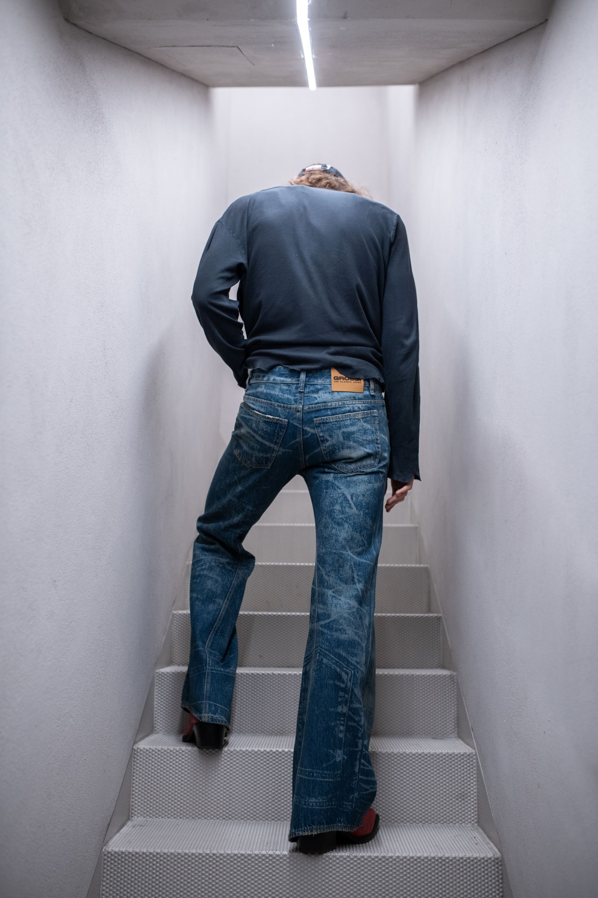 THE CLASSIC JEANS è il capo creato da Andrea Grossi per il nostro progetto, che rivista gli elementi fondamentali del denim tradizionale, trasformati senza perdere la loro identità. Il modello prende ispirazione dall’engineered di Levi's®, caratterizzato dal twist della gamba, che crea una forma ergonomica. Un simile principio è anche alla base del disegno di usura del pantalone, che, essendo stato laserato al rovescio, crea un effetto ottico pensato per mantenere il DNA del classico jeans, ma, anche, per dare vita a forme, linee e geometrie inaspettate.