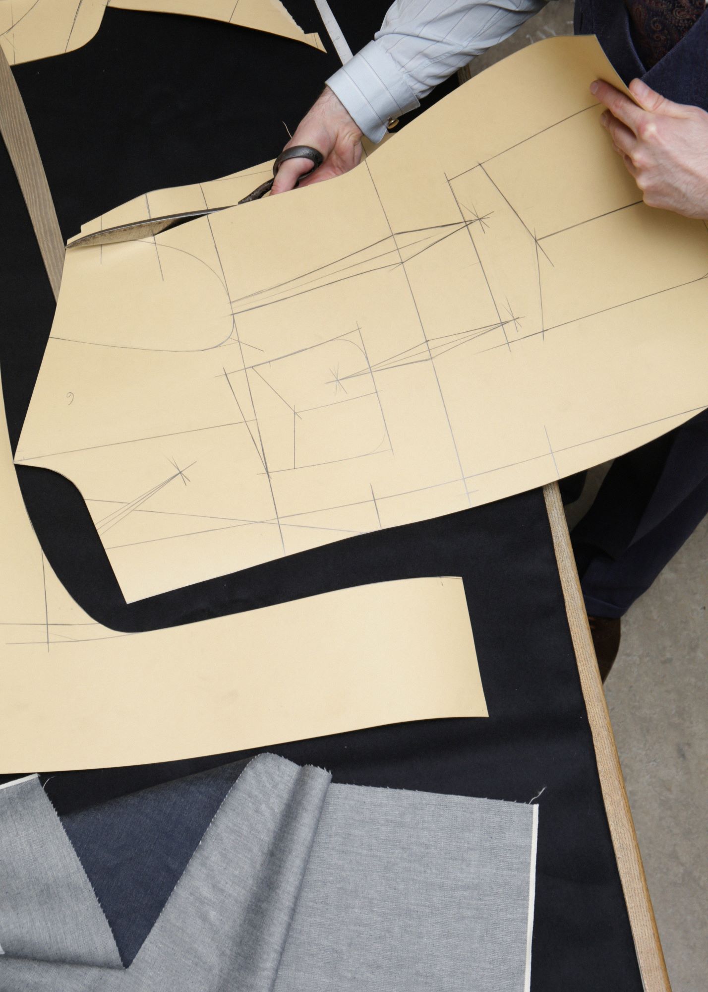 La prima parte del processo riguarda il taglio del blazer per il caporedattore di Men’s File (mostrato nelle immagini) ed è ispirato allo stile tradizionale inglese. Questa attività è curata da Alex Hills, esperto nel taglio su misura, che si occupa del design, delle misurazioni e del taglio. Questo processo meticoloso può richiedere fino a 40 ore per completare il capo finito. Con sede a Tokyo ma distribuzione globale, Men’s File mostrerà il processo di realizzazione e taglio in due numeri (32 e 33).