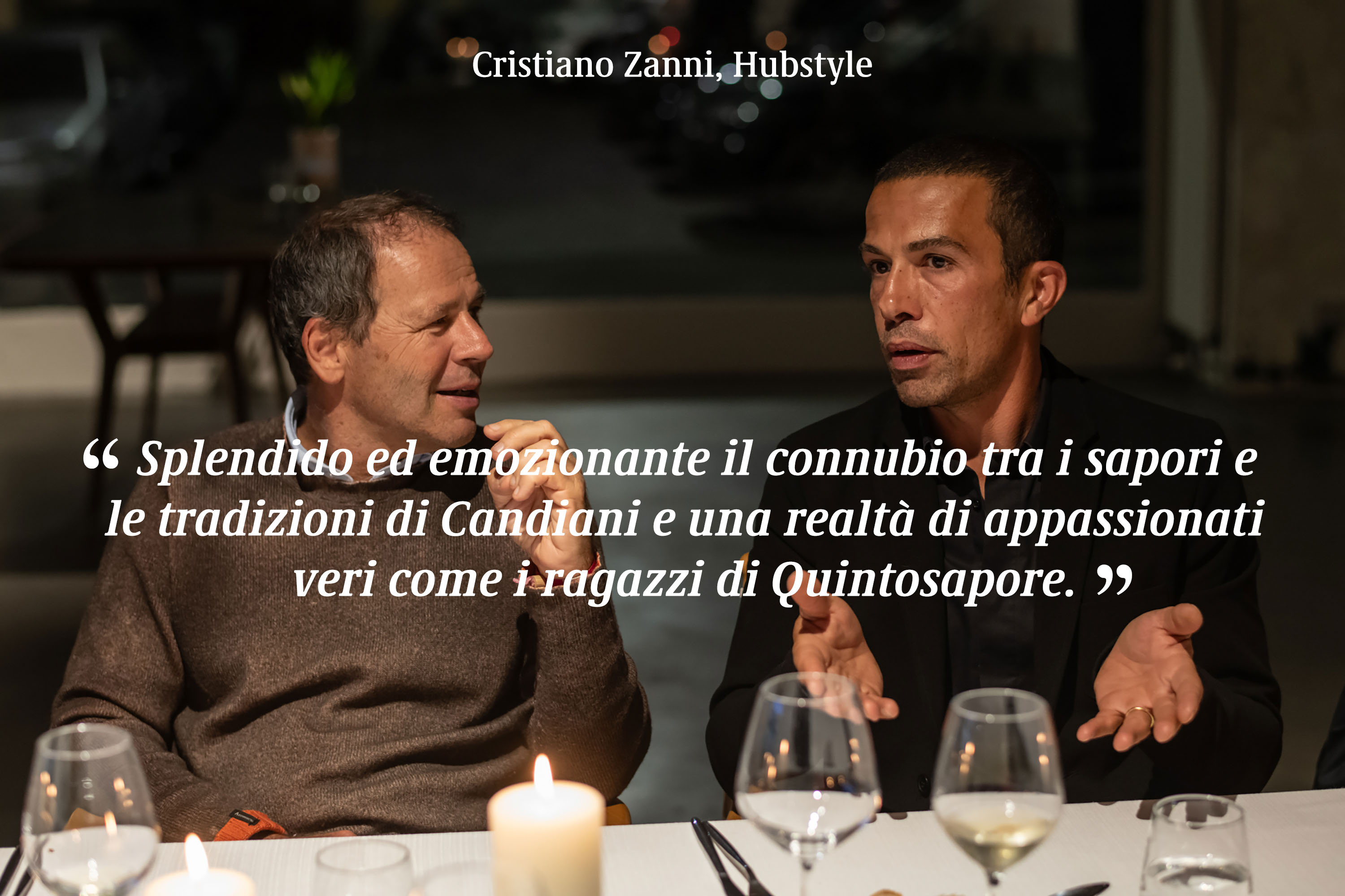 “Splendido ed emozionante il connubio tra i sapori e le tradizioni di Candiani e una realtà di appassionati veri come i ragazzi di Quintosapore. Mi hanno svelato segreti e portato a considerazioni su cui riflettere. Bello l’omaggio di Alberto al suo lungimirante e innovativo padre.”