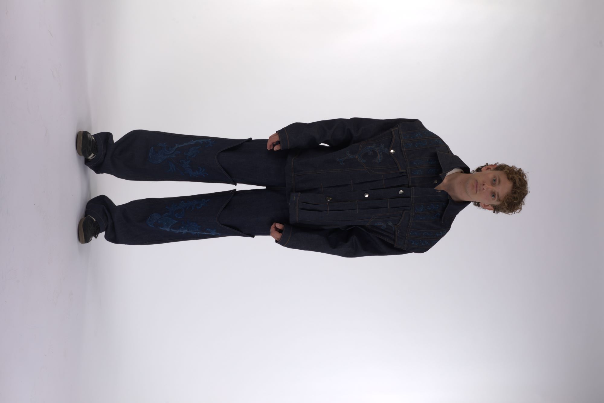 Giacca di Jared Yue Zhou e pantaloni di Selena Siyi Chen